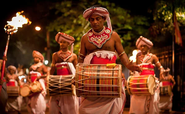 | The Esala Perahera in Kandy is one of the oldest and grandest of all Buddhist festivals, featuring dancers, jugglers, musicians, fire-breathers, and lavishly decorated elephants This is held in the month of Esala (July or August) as to celebrate Buddha's conceive and many years later his leaving of the family home. The Kandy Esala Perahera lasting for ten days. The Sinhalese term 'perahera' means a parade of musicians, dancers, singers, acrobats and various other performers accompanied by a large number of caparisoned Tuskers and other elephants parading the streets in celebration of a religious event. | ||